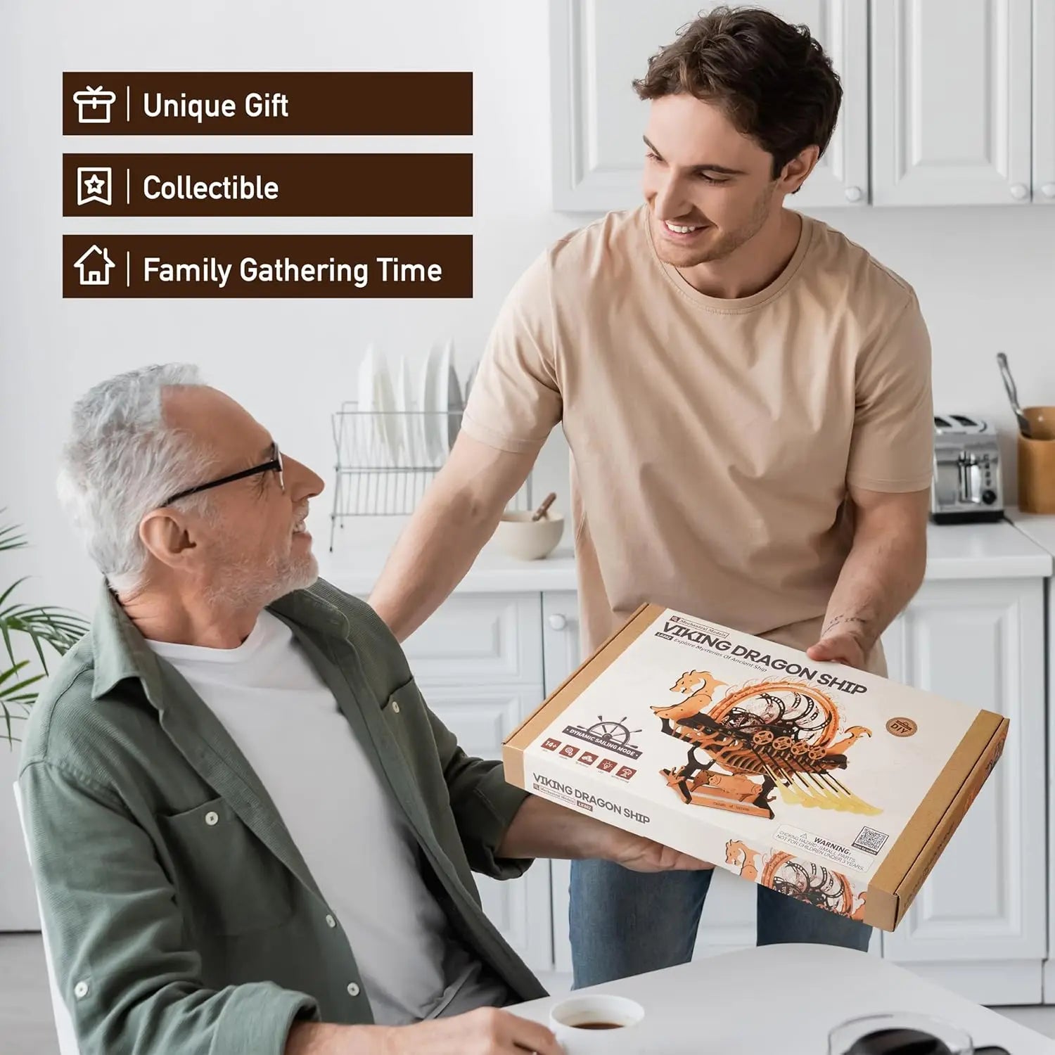 This Viking Dragon Ship is more than just a model—it's a gateway to creativity and problem-solving skills. With an assembly time of approximately 4 hours (medium difficulty; novices may take longer), it's an ideal gift for Christmas, birthdays, or any special occasion. Crafted from thick, durable wooden boards, it promises longevity and satisfaction.