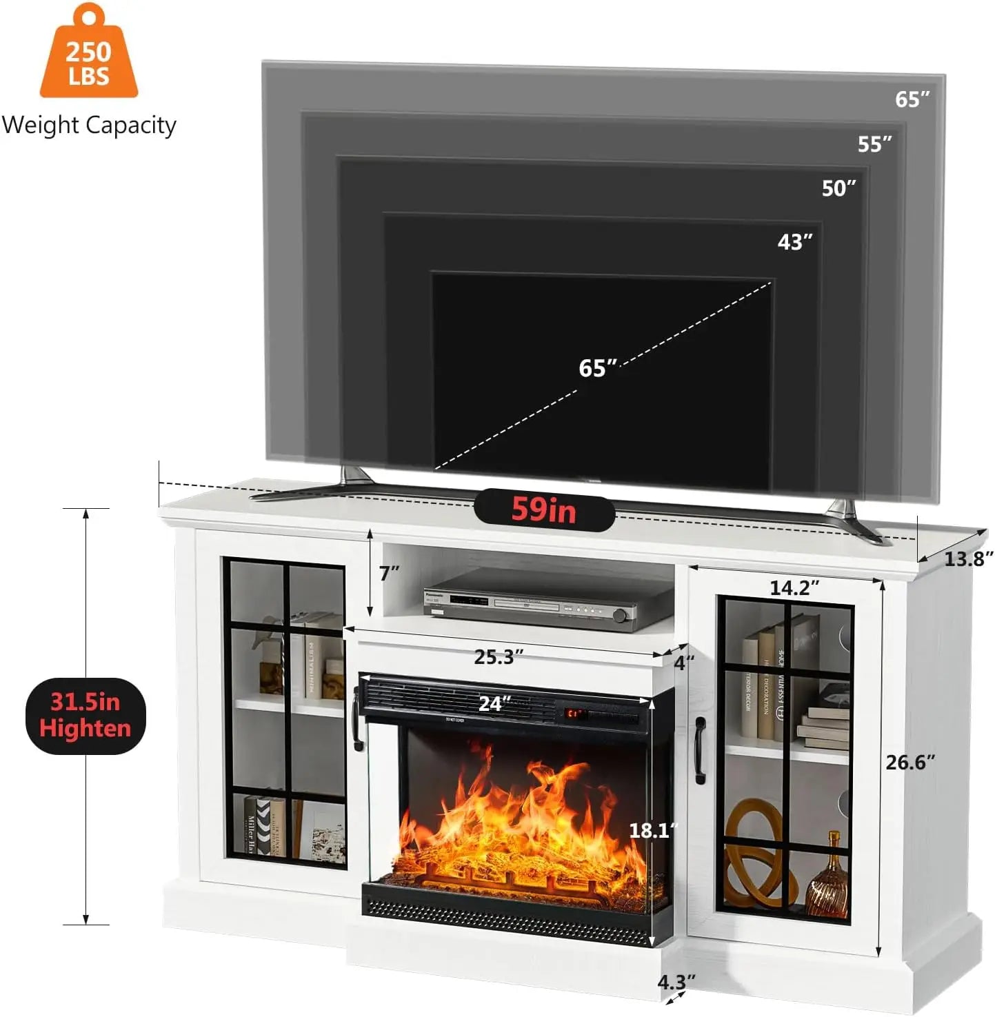 - Flexible and Sufficient Storage Room: The TV Cabinet come with both open and hidden cabinets, offering enough storage space to place kinds of personal items to keep the room neat and organized. 59" wide tabletop can hold up TVs up to 65 inch