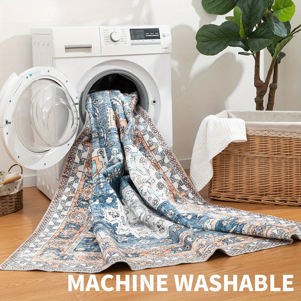 Soft Stain Resistant Washable Machine Washable Non Slip Backing, Blue Checkered Home Decor Rug for Living Room, Dining Room, Office, Bedroom