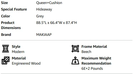 - 1. Multi-function: This Murphy Bed with Cushion is a versatile piece of furniture that offers multiple functions; It can be easily folded away into a cabinet, allowing you to free up floor space in any room