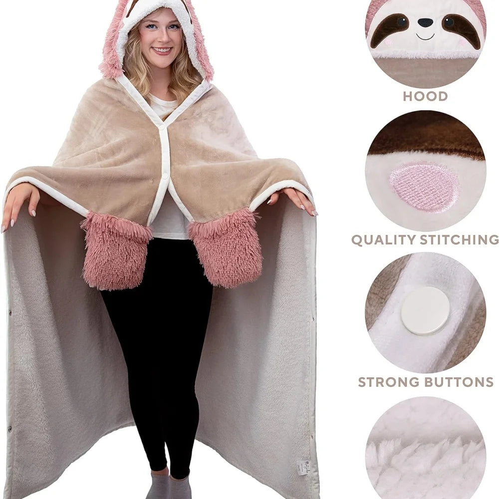 Sloth Wearable Sherpa Hoodie Throw